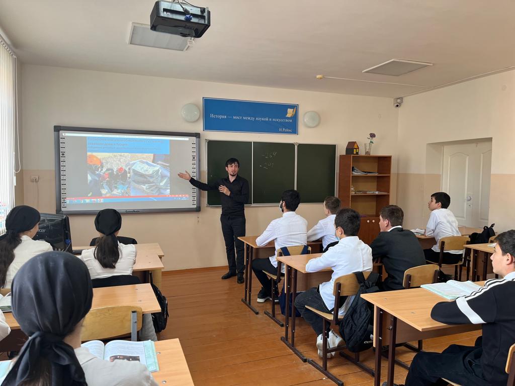 22.03.202322 марта во всех классах прошли внеклассные мероприятия на тему: «Основной закон Чеченской Республики», «День Конституции ЧР». С учащимися 11класса учитель истории и обществознания Рахимов Ш.Р. провел тематический урок «Конституция Чеченской Республики – 20 лет мира и стабильности» Ребята работали с текстом Конституции и решали поставленные учителем задачи. На уроке вспоминали первого президента Чеченской Республики Кадырова А-Х. о его роли в проведении референдума 23 марта 2003 года и принятии Конституции Чеченской Республики.