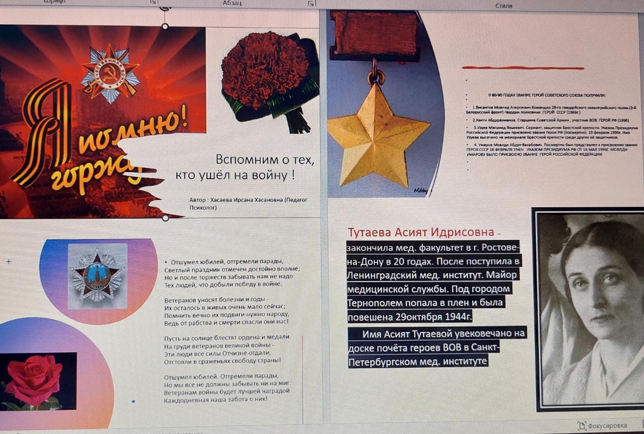 Мероприятие, посвященное ветеранам ВОВ. Провела педагог- психолог Хасаева И.Х. МБОУ и Хаттунинская СОШ