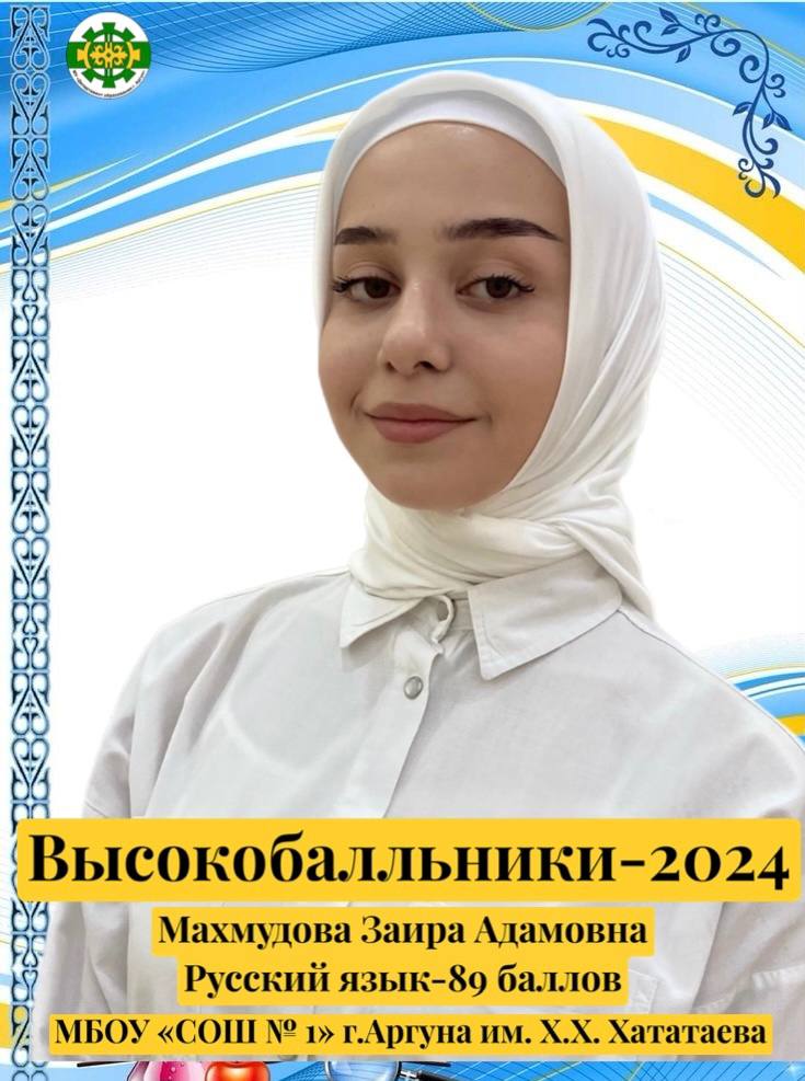 Выпускница МБОУ «СОШ № 1» г. Аргуна им. Х.Х. Хататаева, Махмудова Заира Адамовна набрала 89 баллов на ЕГЭ по русскому языку.