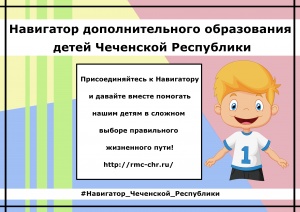 06.08.2018В Чеченской Республике начинает работу навигатор по дополнительным общеобразовательным программам для школьников.Навигатор дополнительного образования - это единая база кружков, секций, объединений различной направленности для детей всех возрастов. Каждый сможет найти занятие по душе, исходя из собственных предпочтений, пожеланий и способностей.Портал создан на технологиях Inlearno, в рамках приоритетного проекта "Доступное дополнительное образование для детей".Присоединяйся к Навигатору и давайте вместе помогать нашим детям в сложном выборе правильного жизненного пути http://rmc-chr.ru/
